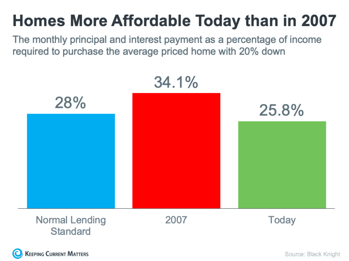 Affordability isn’t as strong as it was last year, but it’s much better than it was during the boom. Here’s a chart showing that difference: