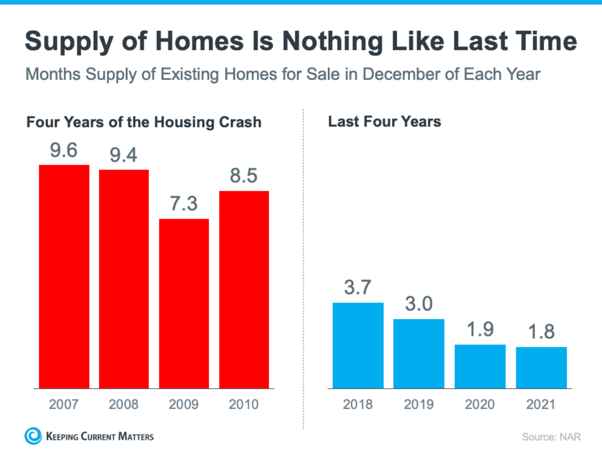 Inventory is nothing like the last time. Prices are rising because there’s a healthy demand for homeownership and at the same time there’s a shortage of homes for sale.