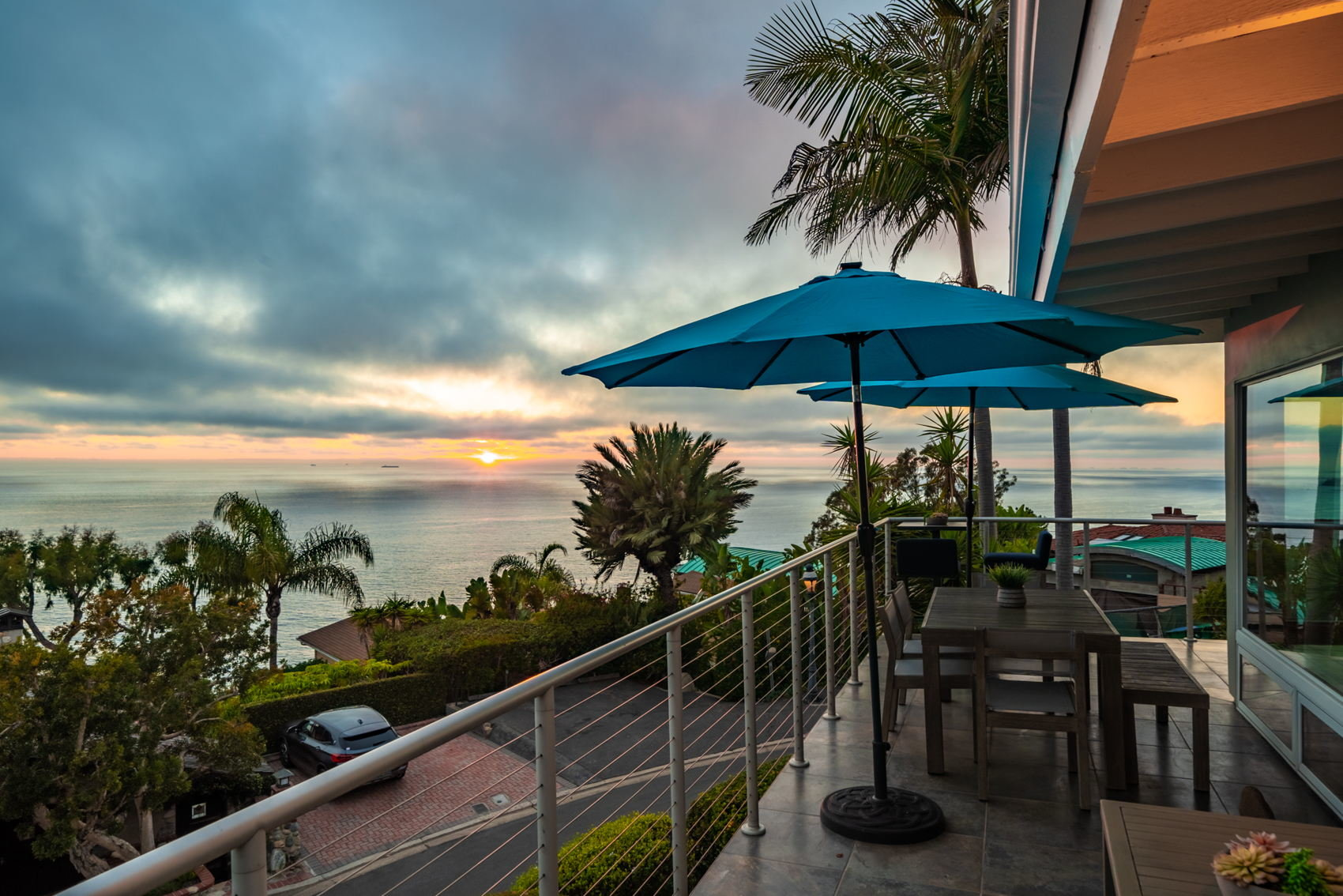 Spacious deck with aluminum modern railings boosts matching interior staircase railings. Additional highlights include air-conditioning, electronically controlled awnings, and Hunter Douglas blinds, a private patio, and 2 car garage with ample storage. Walking distance to beautiful Victoria Beach with close proximity to the montage resort, laguna beach art galleries, shopping, and restaurants.