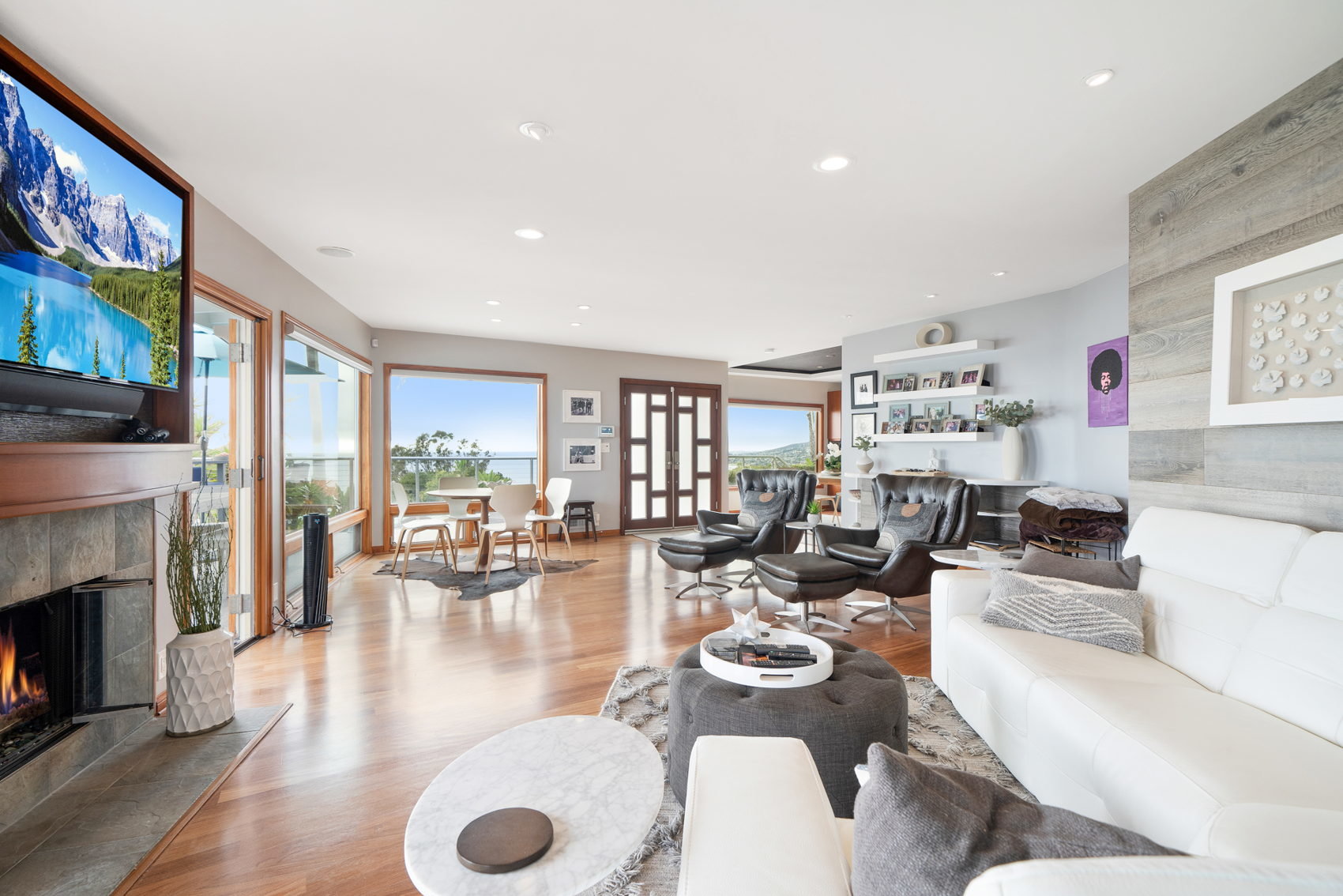 Exquisite contemporary with breathtaking 270-degree ocean views. Recently remodeled, with panoramic ocean views to the north laguna coastline, Catalina Island, and south to the montage rock. Tastefully landscaped, this unique home features 2 newly remodeled en suite full baths and a powder room on the main floor.