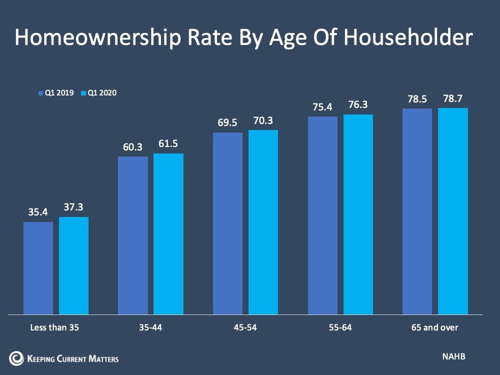 “The homeownership rates among all age groups increased in the first quarter 2020. Households under 35, mostly first-time homebuyers, registered the largest gains, with the homeownership rate up 1.9 percentage points from a year ago. Households ages 35-44 experienced a 1.2 percentage points gain, followed by the 55-64 age group (a 0.9 percentage point increase), the 45-54 age group (a 0.8 percentage point gain), and the 65+ group age (up by 0.2 percentage point).”