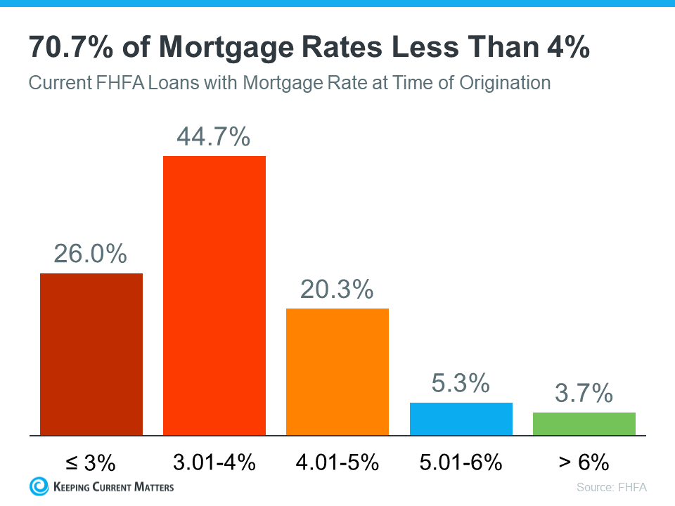 A few factors are also in today’s market, adding to the inventory challenge. The first is the mortgage rate lock-in effect. Some homeowners are reluctant to sell because of where mortgage rates are right now. They don’t want to move and take on a higher rate than the one they have on their current home. The chart below helps illustrate just how many homeowners may find themselves in this situation: