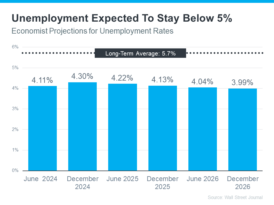 Projections show the unemployment rate will likely stay below the 75-year average. That means you should expect to avoid a wave of foreclosures that would impact the housing market significantly.