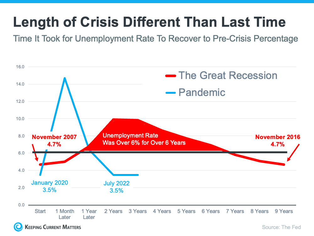 Here’s how the quick job recovery this time helps the housing market. First, because so many people are employed today, there’s less risk of homeowners facing hardship and defaulting on their loans. This high employment rate helps put today’s housing market on a stronger footing and reduces the risk of more foreclosures coming onto the market.