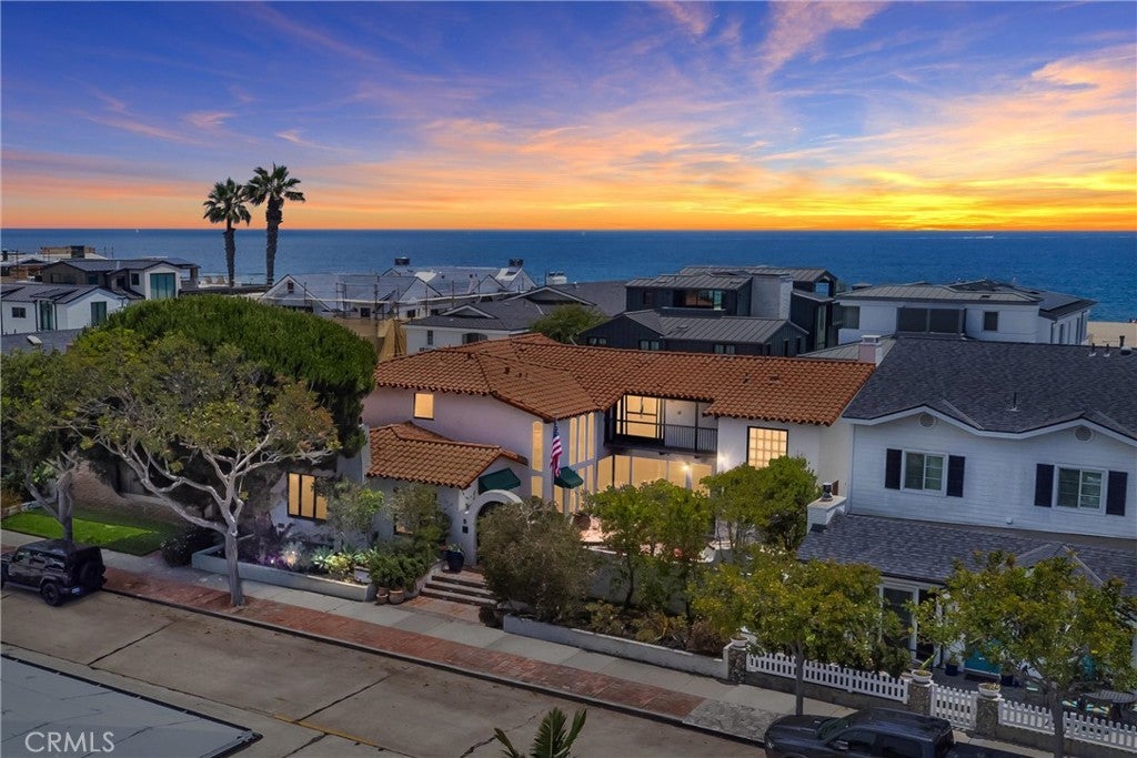 Not your average beach bungalow! Set on a rare double lot just one street from the sand, on the coveted Balboa Peninsula, this one-of-a-kind Spanish Colonial Revival estate, channels the charm of a Caribbean-style fortress with arched windows, soaring wood beam ceilings, and wrought iron detailing. Enjoy peek-a-boo ocean views and unmatched curb appeal in a home that’s as iconic as it is inviting. Offering 3+ bedrooms, and 3 full bathrooms, including a private guest/maid’s quarters with separate entrance and staircase, this layout is as flexible as it is functional. The gated front patio is an entertainer’s dream, with authentic Saltillo tile, a built-in fireplace, BBQ/bar, and an ornate fountain anchoring the courtyard. Inside, modern updates seamlessly blend with old-world character: a gourmet kitchen with custom wood cabinetry, granite counters, and Sub-Zero/Viking appliances; a dreamy primary suite with walk-in closet, hardwood floors, and balcony access; and a spa-inspired bath featuring heated marble floors, dual vanities, marble slab shower, and soaking tub. Private alley access to an attached 2-car garage, just steps from the beach and minutes from world-renowned dining, shopping, and entertainment. Gated, private, and dripping with storybook character—this is coastal living with soul.