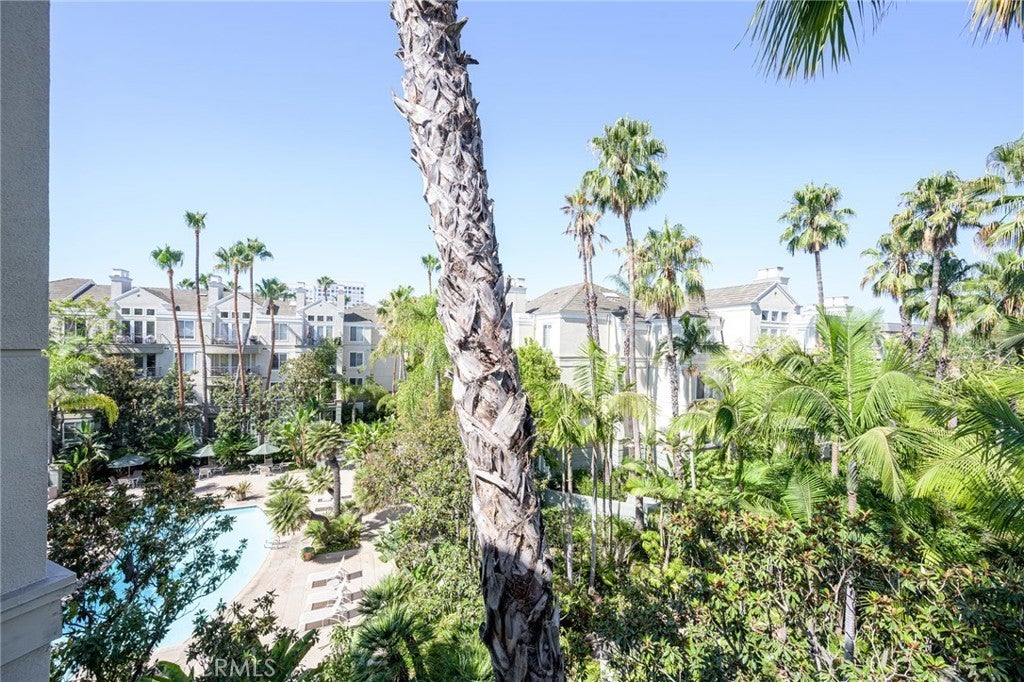 SPECTACULAR PENTHOUSE, Views of palm trees, pool and spa from high above! Boasting a spacious floor plan in the highly desirable Metropolitan, this model perfect residence features two master suites, formal entry with wall-mirror, large living room with vaulted ceilings & fireplace with custom mantle, formal dining area with designer light fixture and floor-to-ceiling wall mirror. Spacious kitchen opens up to the living area, and boasts ceramic tile floors, upgraded appliances, recessed lighting, breakfast nook and raised breakfast bar. Also of note is an inside laundry area with washer & dryer included. Dual master suites; first one with French door access to the deck, walk-in closet with mirrored closet doors, and large master bathroom with upgraded floors, large vanity with dual sinks, skylight and Roman soaking tub. Spacious second master suite with walk-in closet and bathroom with dual vanities & skylight. Upgrades include brand new designer carpeting, fresh two-tone interior paint, extensive use of custom baseboards & crown molding, plantation shutters & more. Private deck with views of pool, spa & palm trees, and penthouse location. Subterranean 2 parking spaces side by side. Centrally located close to South Coast Plaza, Fashion Island, beaches, freeways 405, 73, 55, and John Wayne airport. A must-see!!!