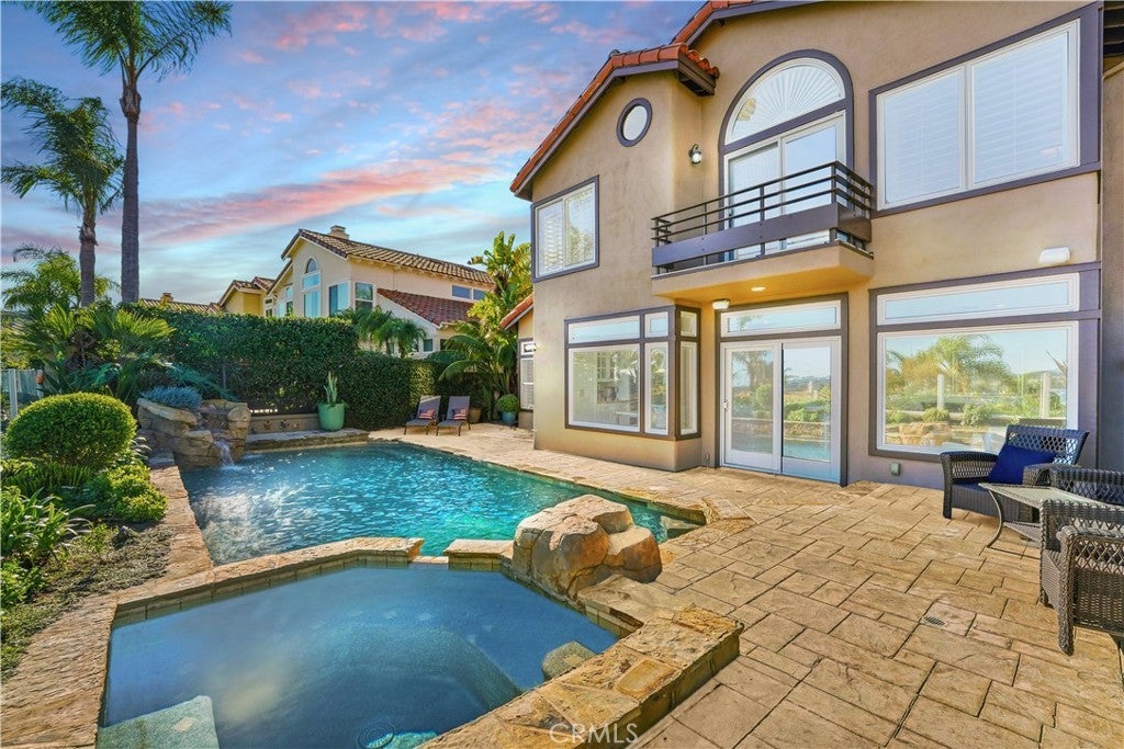 Situated within the Paragon enclave of Niguel Summit, this residence offers an exceptional combination of elevated views, thoughtful design, and effortless indoor outdoor living. Set on a hillside lot, the home captures sweeping views of rolling hills, city lights, and the Pacific Ocean beyond, enjoyed throughout the home. The main level features soaring ceilings, warm wood flooring, and a remodeled staircase with warm wood finishes that adds architectural interest and enhances the home’s open, airy feel. The kitchen is well appointed with white cabinetry, granite countertops, a recently added Wolf gas range, KitchenAid double ovens and microwave, a Zephyr recirculating exhaust hood, and a generous kitchen peninsula offering ample countertop space and a seamless connection to the adjacent living areas. Expansive windows and sliding glass doors connect the family room, breakfast nook, and backyard, creating a natural indoor outdoor flow. Designed for both entertaining and relaxation, the private backyard features a resort style pool and spa with waterfall features and mature landscaping, positioned to take in the views. The home offers four bedrooms, including a main level bedroom with a full bathroom ideal for guests, a home office, or multigenerational living, while upstairs the primary suite provides a serene retreat with elevated outlooks and a spa inspired bathroom with dual vanities, a soaking tub, and a walk in shower, complemented by generously sized secondary bedrooms. Ideally located minutes from world class beaches, coastal trails, and everyday conveniences, the home offers easy access to the Ritz-Carlton and Waldorf Astoria Monarch Beach, Dana Point Harbor, and premier dining, shopping, and resort destinations, with nearby hiking and biking trails, golf courses, and South County beaches completing the coastal Orange County lifestyle.